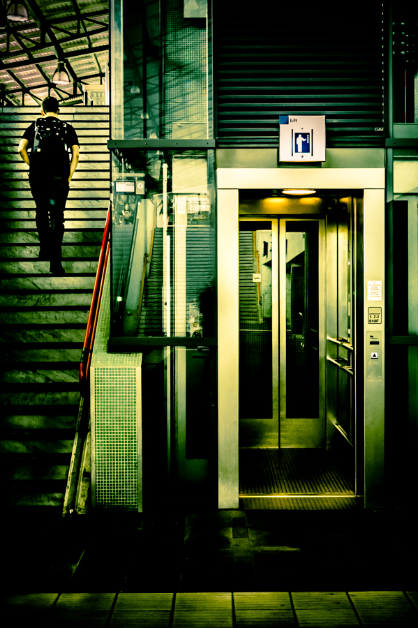 Ik had in de parkeergarage al zo'n geijkte 'beeld-gereflecteerd-in-een-plas-water' vastgelegd. Maar zocht toch nog naar een andere invulling.