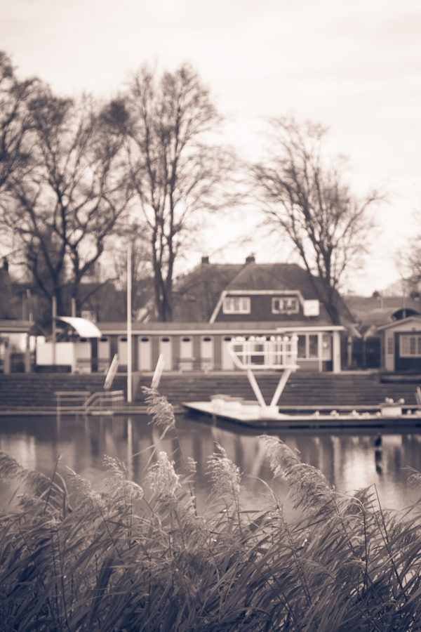 De fiets gepakt en naar het historische natuurbad in het Tuindorp van mijn stad gereden, praktisch om de hoek. Gesloten uiteraard maar ook van een afstand kan het beeld ervan aardig zijn. Dus een paar foto's gemaakt. En inderdaad, aardig.