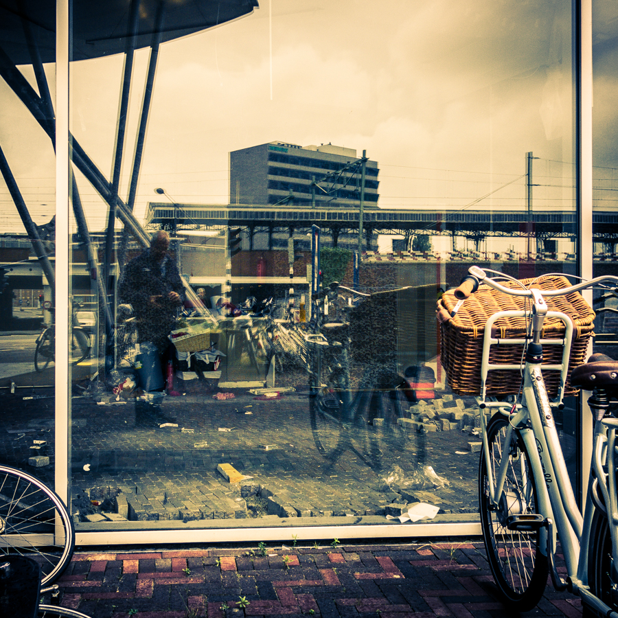 Ik moest even geduld hebben wat dat reinigen aangaat en daarom liep ik ondertussen een rondje door het stadscentrum, met de Canon G15 in de jaszak. En was ik tegelijkertijd op zoek naar een geschikt beeld voor het thema 'reflecties'.